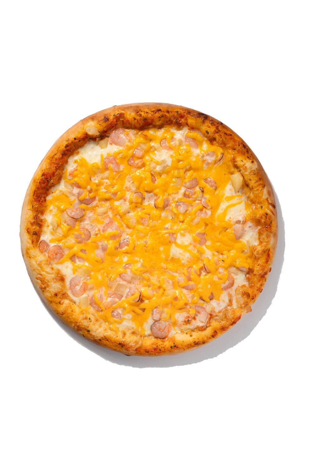 Состав: соус фирменный, моцарелла, ветчина, ананас, чеддер Вес: 590 гр.
