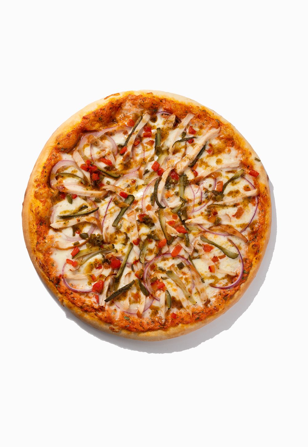 Состав: соус фирменный, моцарелла, лук, кура копч, перец марин, огурцы марин, халапеньо, соус пикантный Вес: 710 гр.