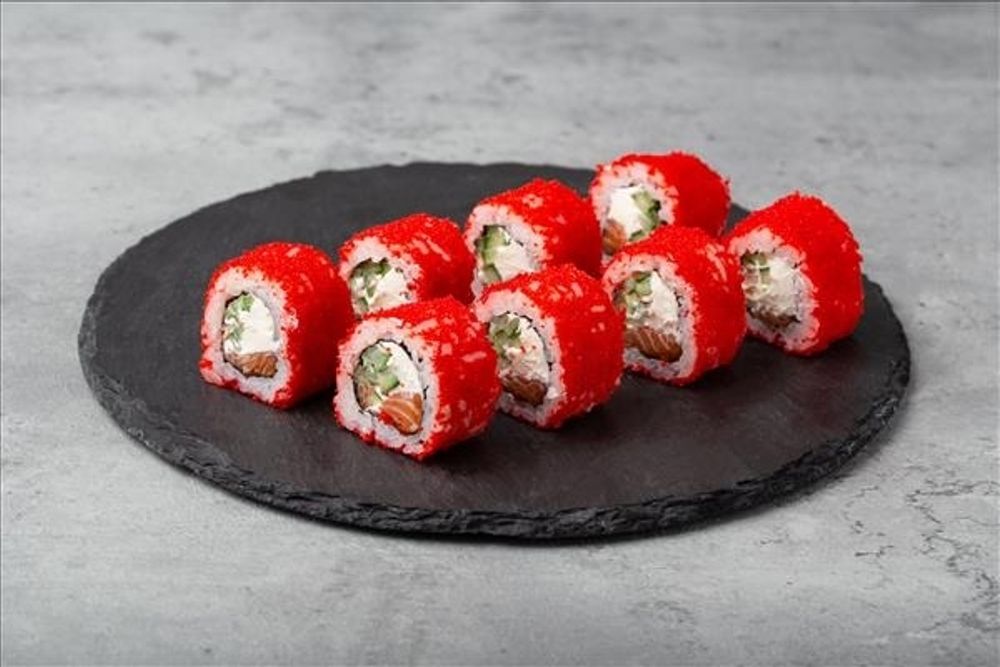 Состав: лосось, сыр, огурец, икра «тобико». Вес: 200 гр.