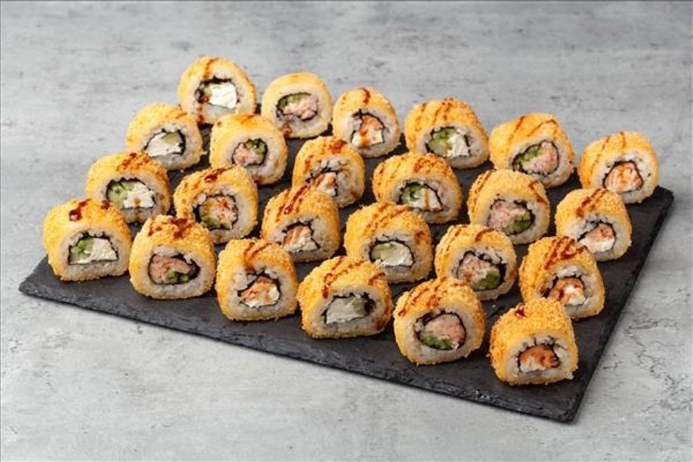 Состав: ■ Роллы: — «Темпура с крабом» — «Темпура с лососем» — «Темпура с сыром» Вес: 655 гр.
